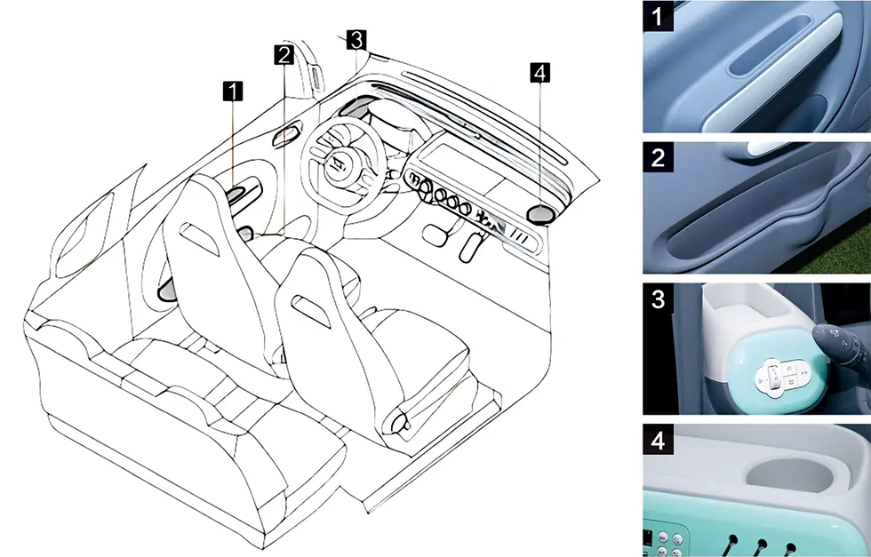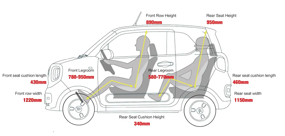 Deși are dimensiunea exterioară a unei mașini de nivel A00, scaunele din spate au golirea spate spațioasă pe care o au doar mașinile din clasa A.